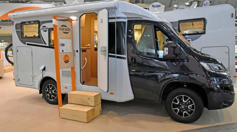 На CMT 2020 компания Carado привезла модель Europe Edition в двух исполнениях: V 132 (на фото) и V 337. Из серийного оснащения отметим кабину водителя, окрашенную в графитовый цвет, светодиодные ходовые огни, air bag для водителя и переднего пассажира, систему контроля давления в шинах, ручной кондиционер в кабине водителя. В комплектацию также входят темпомат, изолированный резервуар для сточной воды и мягкий уголок Artica с комбинированной обивкой «кожа-ткань». Цена кемпера – 46 154 евро.