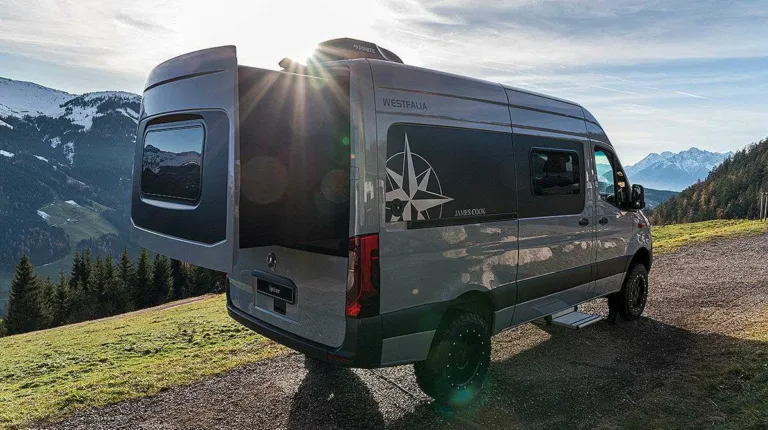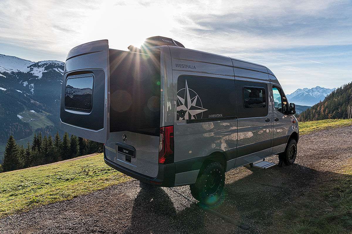Известная компания Westfalia представила на выставке кемпер James Cook на базе Mercedes-Benz Sprinter. В корме установлена выдвижная секция, в которой находятся утепленные спальные места.