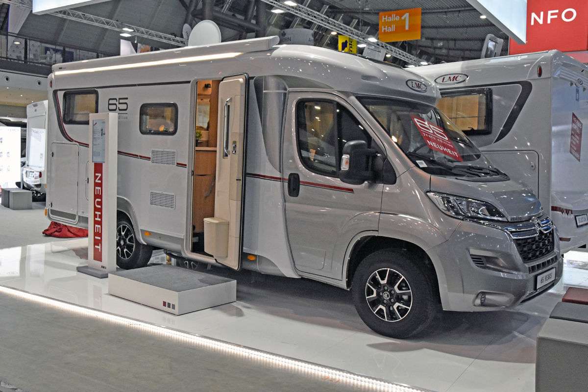 Компания LMC привезла в Штутгарт новинку – модель V 643 в исполнении 65 Years Edition. Длина фургона 6,76 метра, ширина 2,20 м и высота 2,69 м. В нём имеется два спальных места, расположенных в корме. По желанию односпальные кровати могут быть соединены мягким элементом. Цена – 56 900 евро.
