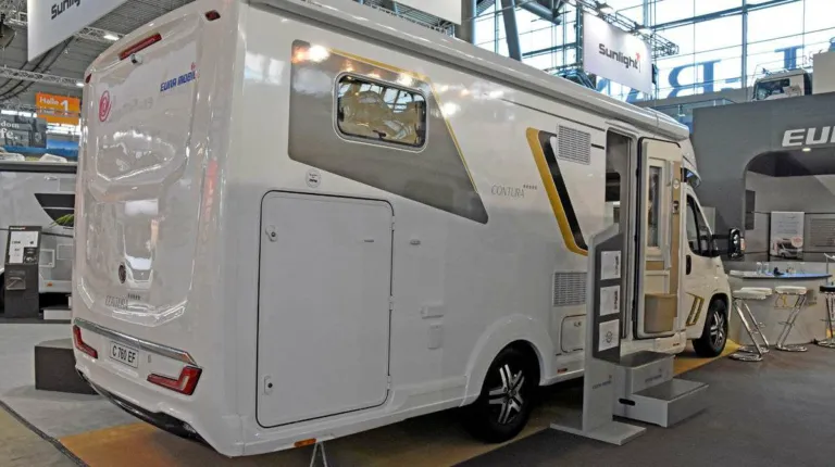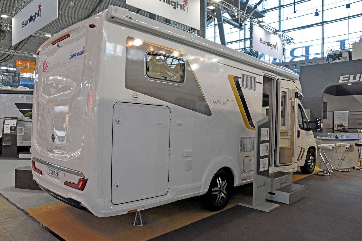 Производитель Eura Mobil представляет публике свой новый Contura 760 EF. Базовым шасси является Fiat Ducato Maxi с двигателем в 140 л.с. Здесь свежая планировка салона – с двумя односпальными кроватями в корме (размером 1,95х0,8 м и 2,0х0,8м), а также сиденьями Face-To-Face (с англ. «лицом к лицу»), которые можно трансформировать в еще одну кровать – размером 0,90х2,0 м. Цена машины – 79 990 евро.