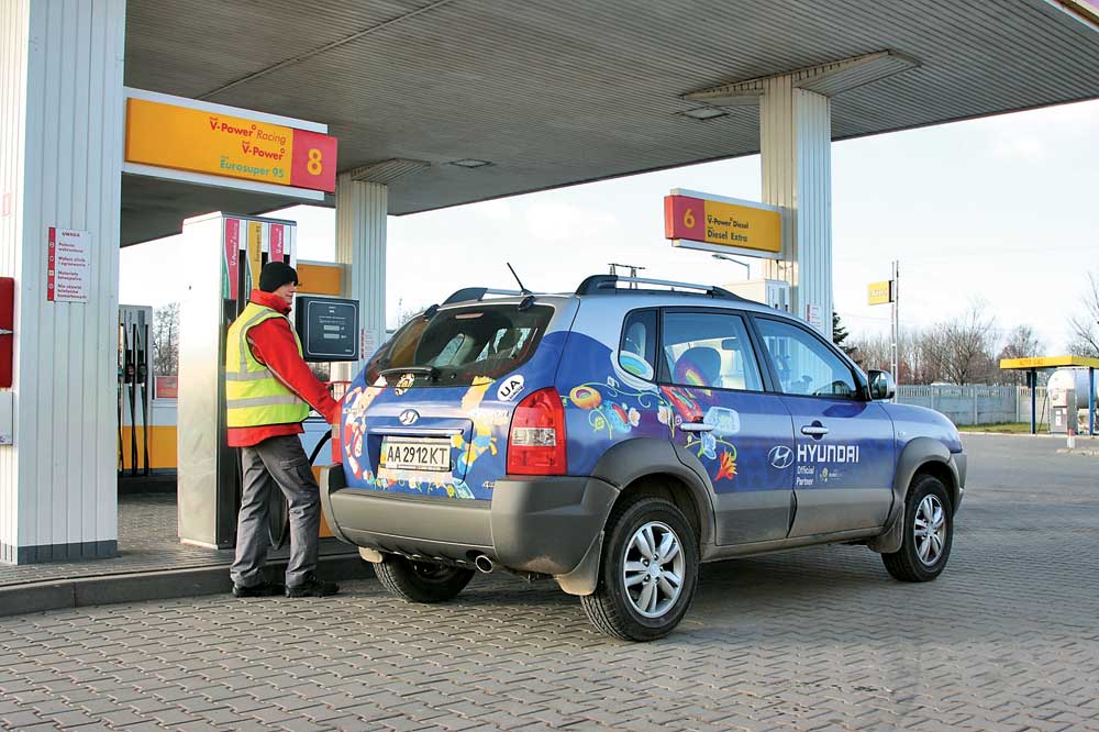 Редакционный Hyundai Tucson оснащен 2,0-литровым бензиновым двигателем. Согласно паспортным данным он способен питаться бензином с октановым числом как 95, так и 92 единицы. Возможность использования более низкооктанового бензина во время экономического коллапса предлагаем расценивать как подарок от инженеров Hyundai. Например, если взять разницу стоимости бензина марок А-92 и А-95, которая сегодня составляет около 0,2 грн., и умножить на средний расход топлива – 12 л/100 км, то на каждых 100 км пути владелец Hyundai Tucson экономит около 2,5 грн. Получается, что ежегодно при среднем годовом пробеге автомобиля 20000 км, используя только бензин с октановым числом 92 единицы, автовладелец уменьшит траты на топливо на 480 грн. – это половина стоимости годовой «гражданки». Заметим, как показали наши замеры, при использовании бензина А-92 вместо А-95 разница в расходе топлива не выявлена (при условии «бережного» отношения к педали акселератора). Кроме того, высокие тяговые показатели мотора на низких оборотах нивелируют естественные потери, возникающие при использовании низкооктанового бензина. С другой стороны, мы бы не рекомендовали заправляться таким горючим тем водителям, которые предпочитают активный стиль езды или планируют поездку на загруженном автомобиле. В таких случаях снижение октанового числа ощутимо скажется на динамике Hyundai Tucson.