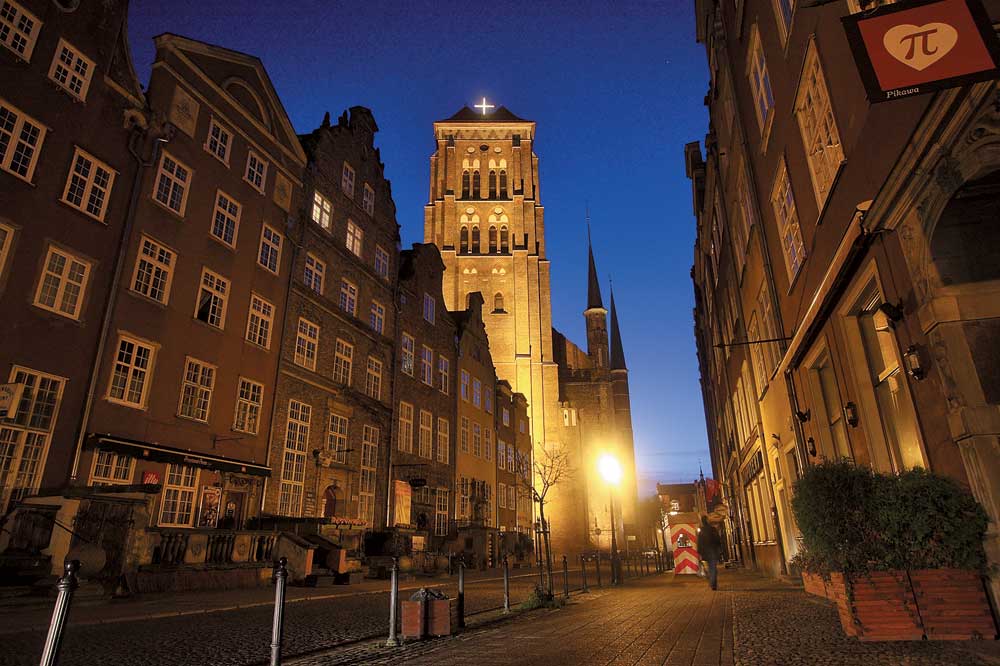 Въезжая в Гданьск в сумерках, вы можете насладиться видом ярко светящегося огнями нефтеперерабатывающего завода, с которого топливо экспортируется и на украинские АЗС. Кроме того, Гданьск расположен на побережье Балтийского моря, которое славится самыми крупными залежами янтаря; его добыча и обработка – важная часть местной экономики. А ночью и сам город кажется янтарным – в подсветке старинных зданий преобладают теплые желто-коричневые оттенки. Причем Гданьск вобрал в себя не только цвет, но и необыкновенную теплоту «солнечного камня». Чего только стоит прогулка по ночному городу! Современные здания гармонично сочетаются с более поздними строениями тех времен, когда Гданьск еще носил название Данциг. Но самое уютное место – набережная канала в центре. Ты сидишь на веранде небольшого ресторанчика, спокойная вода отражает подсвеченные разноцветными огнями дома, а рыбное блюдо на накрытом белой скатертью столе пахнет так аппетитно…