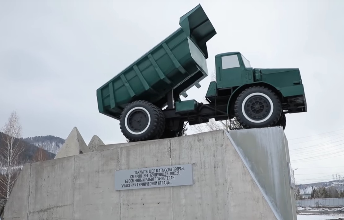 Уникальный МАЗ-525 сегодня стоит на постаменте в Дивногорске, там где находится Красноярская ГЭС, в строительстве которой самосвал принимал активное участие. Памятник установлен в честь трудового подвига автомобилистов-строителей, которые этими автомобилями-гигантами перекрывали устье реки Енисей, засыпая его тысячами тонн камней.