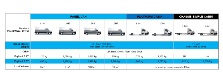 Це шасі з кабіною, доступне у двох виконаннях довжини (L2 і L3), з максимальним корисним навантаженням 1620 кг (до переобладнання).