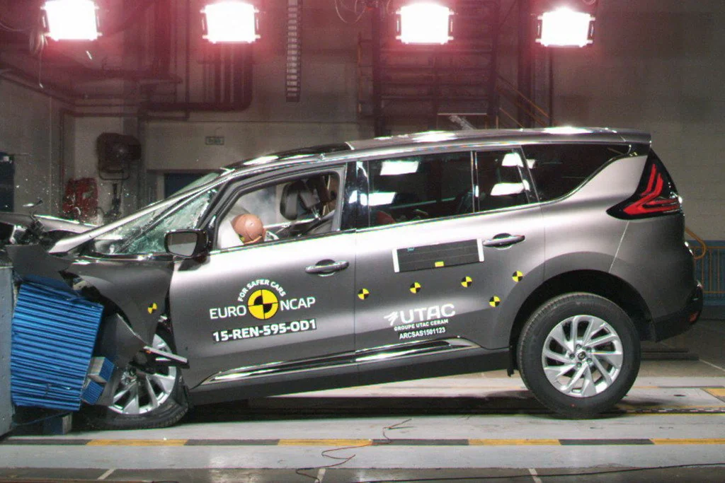 Новейший минивен Renault Espacе по результатам серии краш-тестов получил заветные пять звезд. Безопасность водителя и переднего пассажира оценена на 82%. При лобовом ударе о деформируемое препятствие модель заработала 6,7 баллов. У водителя все хорошо (зеленый цвет), кроме грудной клетки, получившей достаточную защиту (желтый цвет). У переднего пассажира – в большей части также хорошо, кроме бедренной части обеих ног (недостаточная защита – оранжевый цвет) и обеих голеней (достаточная защита – желтый цвет). При лобовом ударе о препятствие по всей ширине авто Espacе набрал 7,9 балла. В данном случае у переднего пассажира все зеленое, кроме грудной клетки (достаточная защита – желтый цвет). При боковом ударе машину оценили на 14,6%. Все дело в водителе, туловище которого при ударе о столб получило недостаточную защиту (оранжевый цвет). По защите пассажира-ребенка автомобиль получил 89%, по защите пешехода – 70% и по системам активной и пассивной безопасности – 80%.