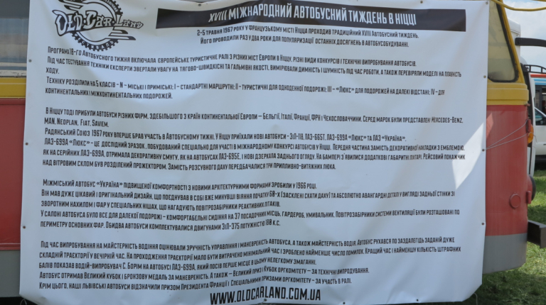 Название автобусной экспозиции OldCarLand 2019 дали в честь XVIII Международной автобусной недели в Ницце, которая проходила более полувека назад. Именно тогда, в 1967 году сюда съехались ведущие производители автобусов со всей Европы, в частности из СССР. Львовский автобусный завод демонстрировал свою новейшую разработку – междугородный автобус ЛАЗ «Украина».