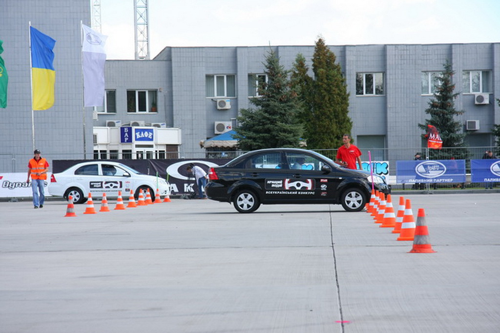 Четверо победивших в этом конкурсе соревновались на скоростном маневрировании – они проходили два круга на двух машинах по специальному маршруту, огибая фишки. Тут же определился и обладатель третьего места.