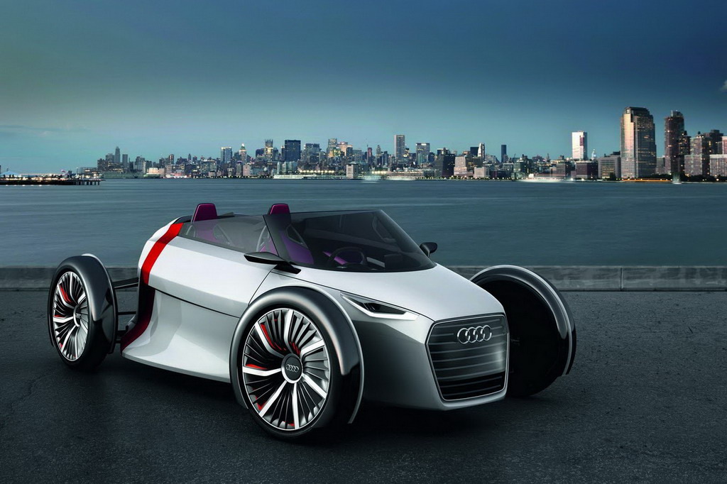 Крошечный автомобиль Audi Urban Concept имеет скромные габариты, которые помогут в условиях тесных городских дорог – его длина составляет всего 3200 мм, ширина – 1700 мм, а высота – 1200 мм. В движение концепт приводится двумя электрическими моторами. Для снижения веса в конструкции обильно использовался алюминий и карбон.