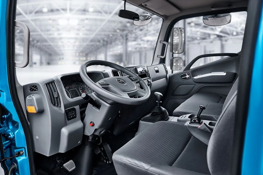 Трехместная кабина имеет зеркала с электрорегулировкой и электрообогревом. Кондиицонер и предпусковой подогреватель, а также обтекатель на крыше идут за доплату. Что касается базового оснащения, то оно включает такие системы активной безопасности как ESP, EBD, ASR, а также помощи при трогании на подъеме – HSA.