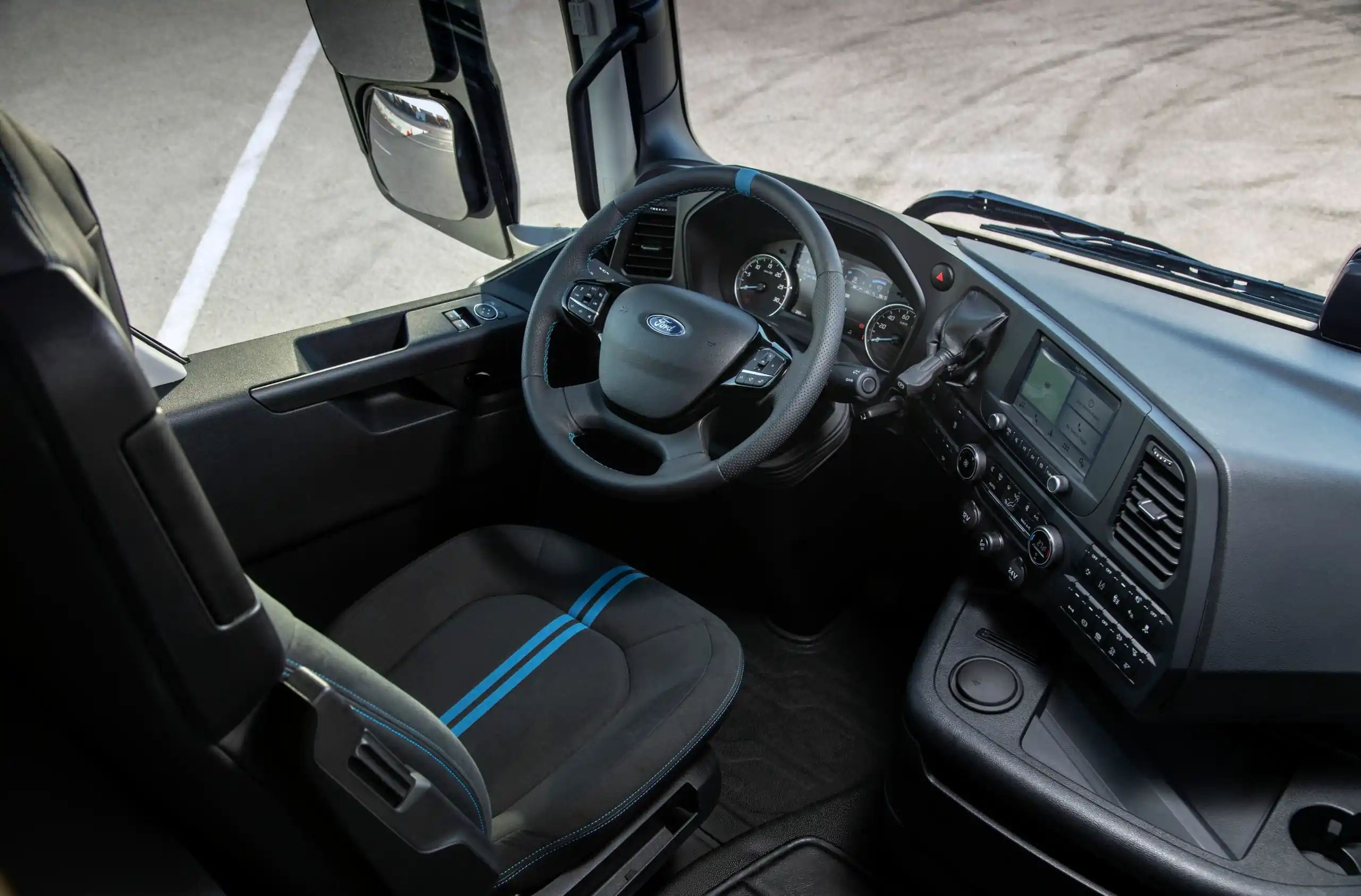 Мощность двигателя ограничивается 450 л. с. (в обычном режиме она составляет 480 л. с.), а скорость транспортного средства - 85 км/ч. Если тягач работает дольше пяти минут, двигатель автоматически выключается. Наконец, для экономии топлива в режиме Eco + отключается мощностная функция kickdown. Владельцы автопарков могут контролировать все эти функции удаленно с помощью мобильного приложения My Ford Trucks.