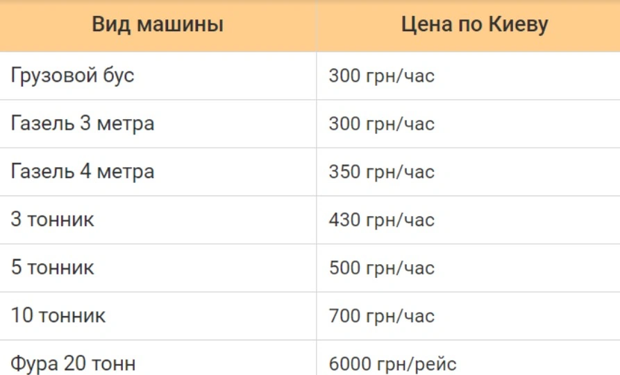 Орієнтовні ціни на вантажне таксі