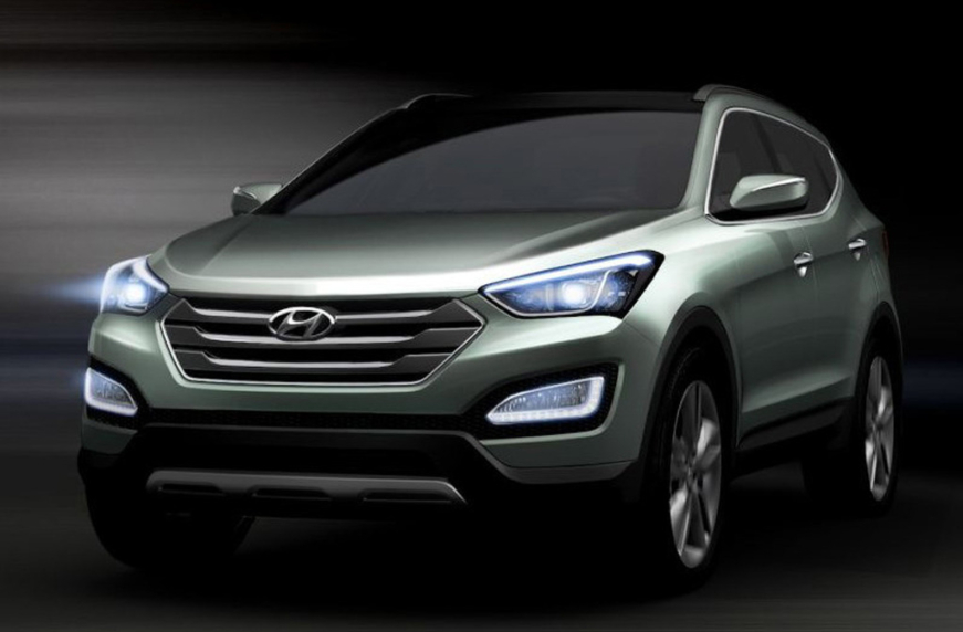 По фото нового Santa Fe видно, что автомобиль получил новую решетку радиатора с хромированными планками, измененный передний бампер со светодиодными секциями под противотуманными фарами, иные фары головного света. Внешность кроссовера выполнена в той же стилистике, что и последние концепт-кары Hyundai – «повторение шестиугольных форм». В частности, такую форму получила решетка радиатора.