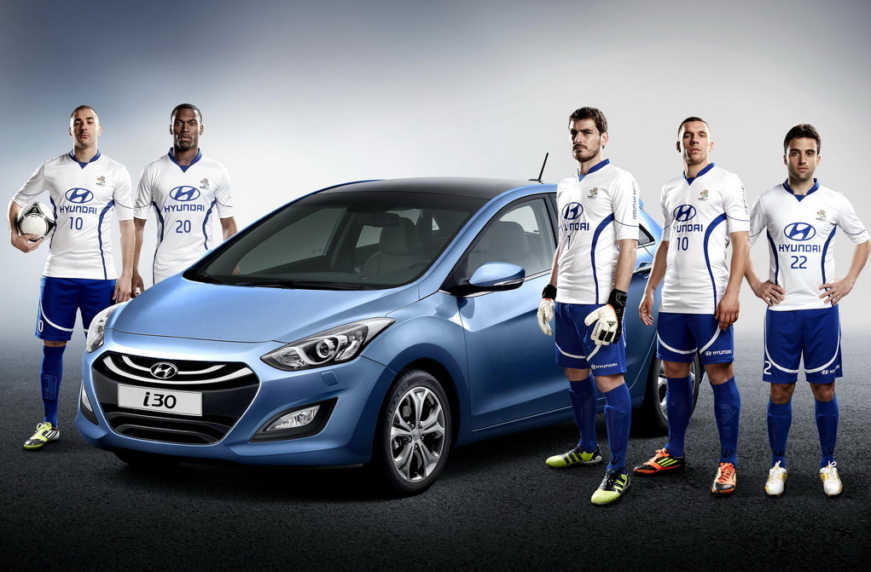 Члены Team Hyundai – испанец Икер Касиллас (Iker Casillas), немец Лукас Подольски (Lukas Podolski), итальянец Джузеппе Росси (Giuseppe Rossi), француз Карим Банзема (Karim Benzema) и англичанин Дэниел Старридж (Daniel Sturridge) – будут участвовать в маркетинговых инициативах автопроизводителя, включая благотворительную кампанию в Facebook, направленную на поддержку молодежи. На странице Hyundai в соцсети пользователи могут голосовать за любимого игрока Team Hyundai, и за каждый поданный голос компания будет выделять на благотворительность €1 (на максимальную сумму в €250 тыс.).