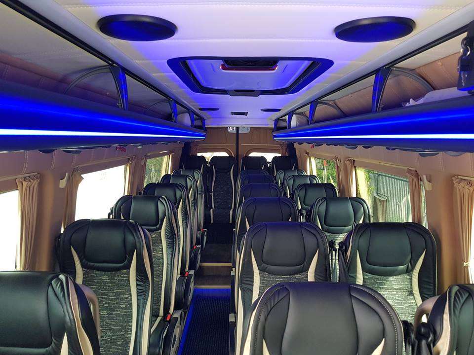 Зовні автобус ProAuto відрізняється від заводського Sprinter накладними бічними вікнами і аеродинамічною спідницею. У салоні монтуються комфортабельні крісла з триточковими ременями безпеки – від 22 до 25 для машини в нашій комплектації.
