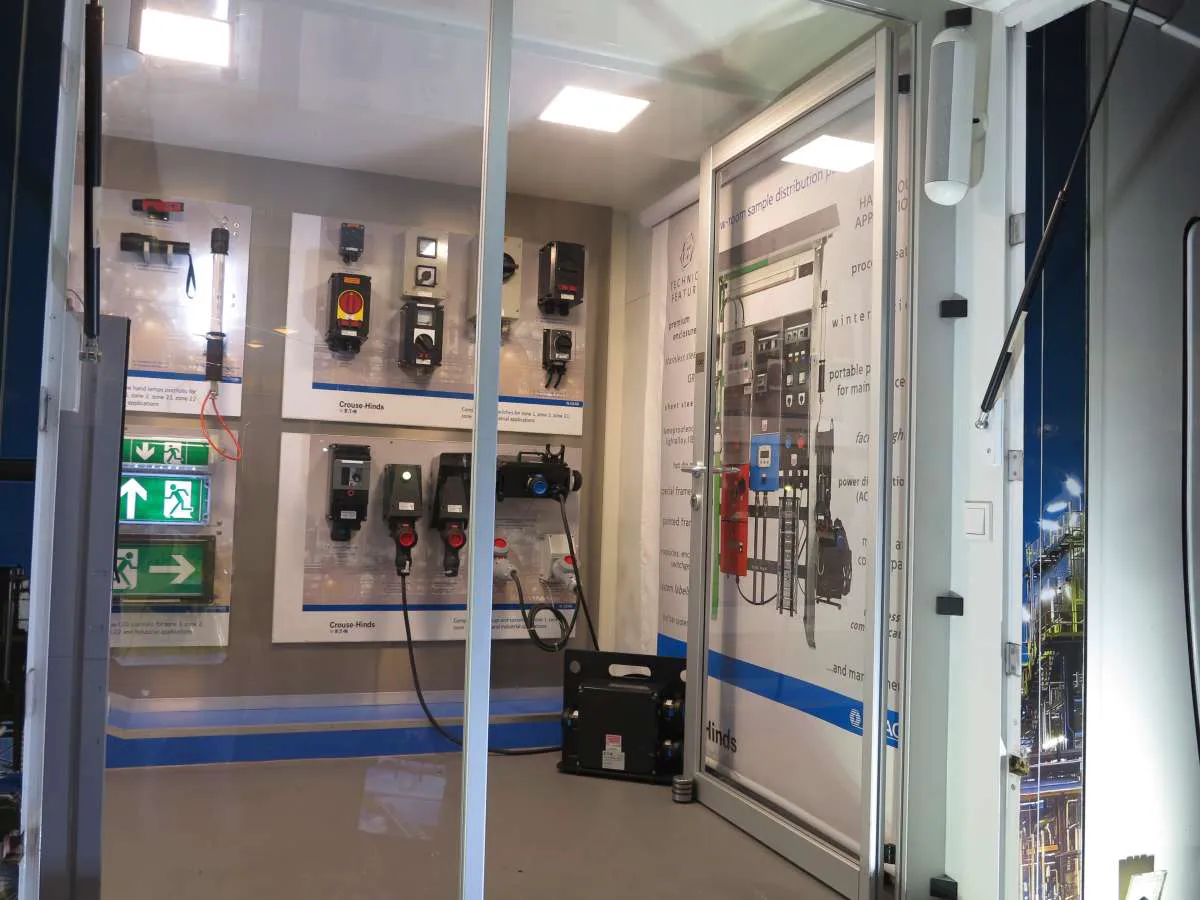 Інфомобіль оснащений зовнішніми розетками на 230В, економічним LED-освітленням, можливо встановити холодильник, а також передову мультимедійну систему з LСD-дисплеями на 35-40 дюймів.