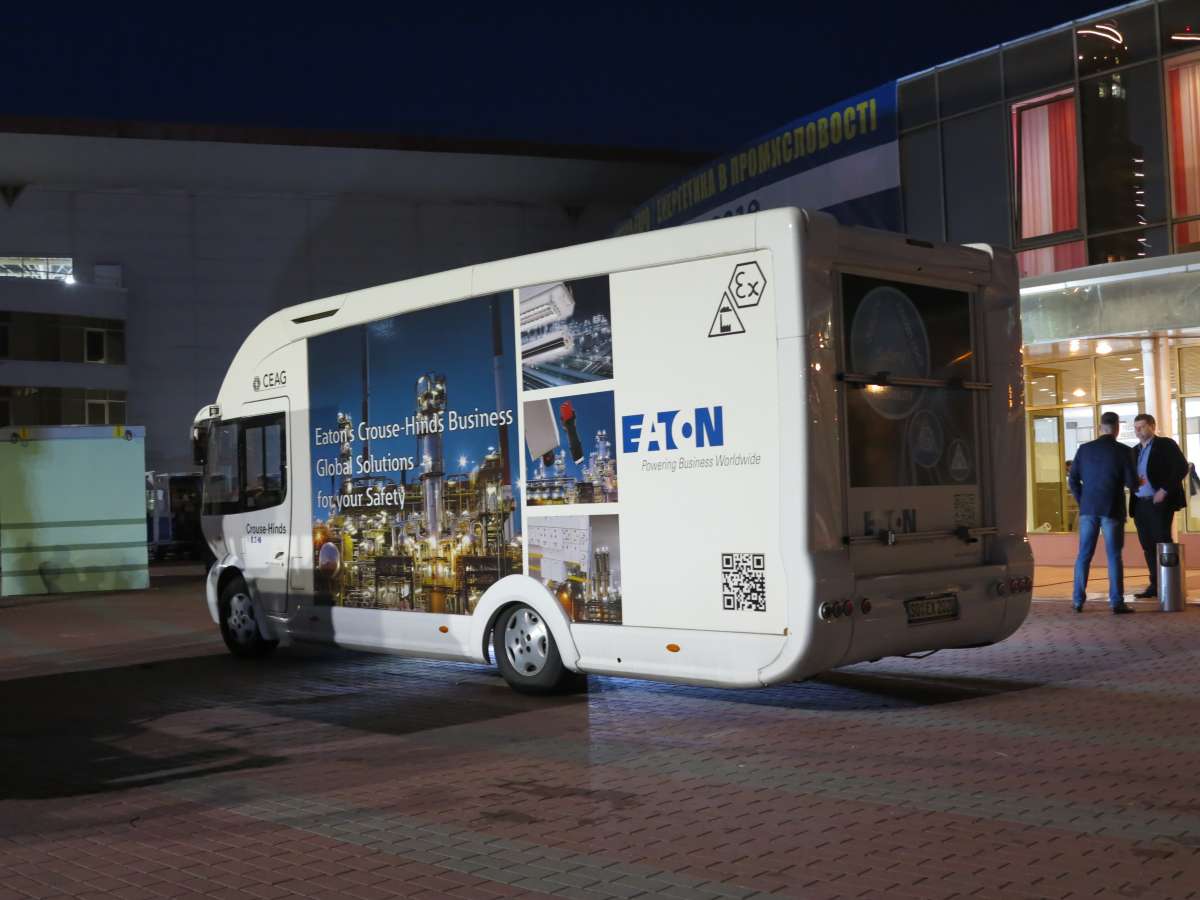 На виставку до Києва Futuria Boxx приїхав у ролі інфомобіля американської машинобудівної компанії Eaton. Вона, зокрема, випускає різні комплектуючі для автомобілів – коробки передач, муфти зчеплення. Крім того, турбокомпресорами Eaton комплектуються всі автомобілі концерну Volkswagen із двигунами TSI і TFSI.