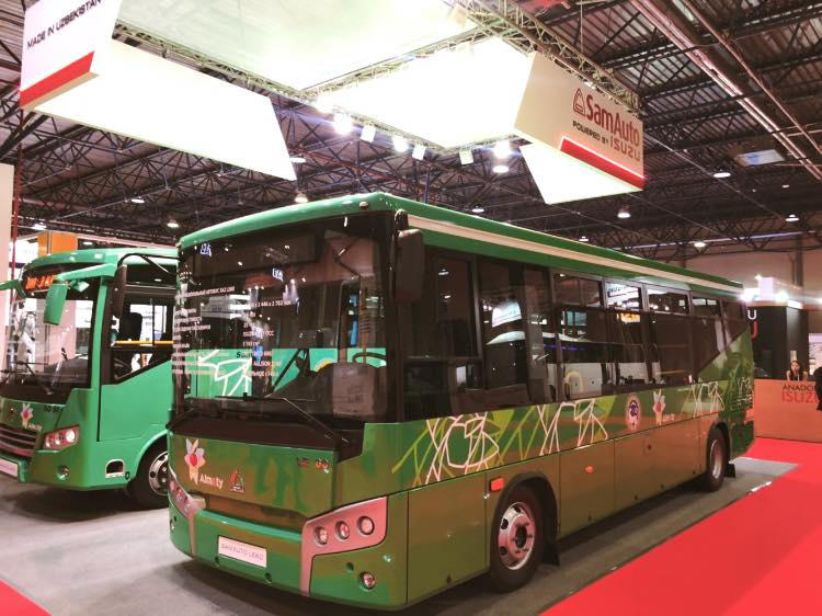 Теперь об экспозиции Busworld Central Asia 2019, которая разместилась в выставочном комплексе Алматы – Atakent Expo. В первую очередь отметим местных производителей – Самаркандский автомобильный завод, который презентовал под брендом Samauto целую линейку городских автобусов на шасси Isuzu. На этом предприятии кстати собирают грузовики данной японской марки. На стенде в частности представлен 8-метровый низкопольный автобус Samauto LE60 c cалоном на 25 мест для сидения и с двигателем Isuzu 5,19 л мощностью 190 л.с.