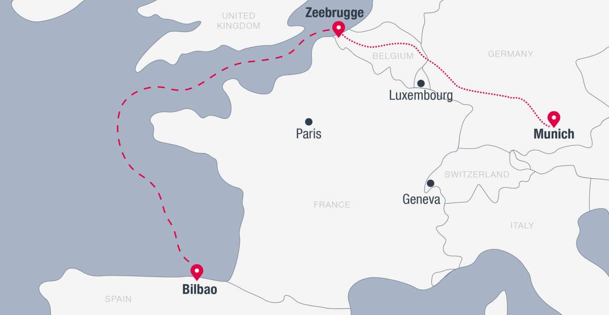 А тем временем 4 февраля несколько седельных тягачей золотистого цвета вместе с эффектными полуприцепами с изображением царя зверей отправились своим ходом из Мюнхена в портовый бельгийский город Зебрюгге – это почти 900 км. И уже оттуда машины по морю отбудут в Бильбао – еще порядка 1500 км.