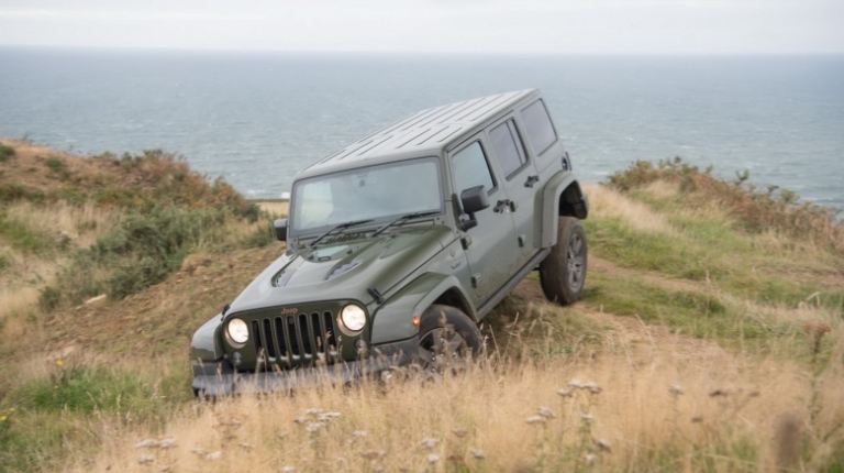 Он расположился на вершине утёса возле залива Робина Гуда в Йоркшире. Таким нестандартным способом британский отдел Jeep решил отпраздновать 75-летие марки.