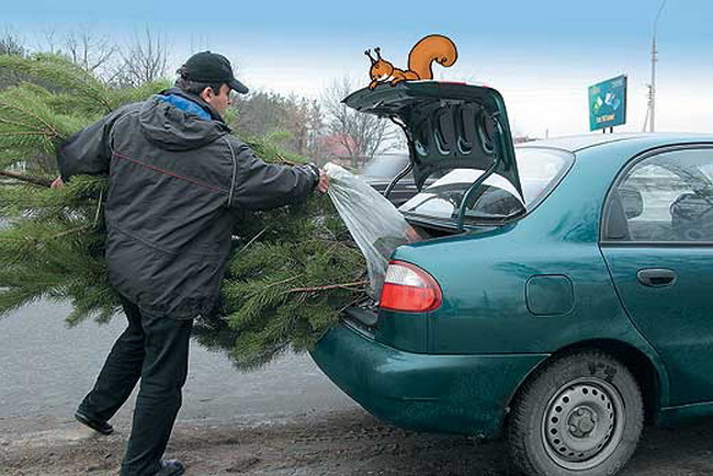 Весьма желательно упаковать деревце в полиэтиленовый мешок (добросовестные торговцы елочками делают это бесплатно). Такая упаковка поможет обезопасить автомобиль, людей и их одежду от колючих иголок и несмываемой древесной смолы. Особо тщательно нужно завернуть место сруба или среза ствола – оставшиеся на нем щепки и заусенцы, кроме всего прочего, могут порвать обивку салона.
