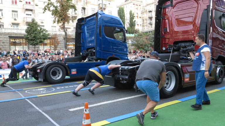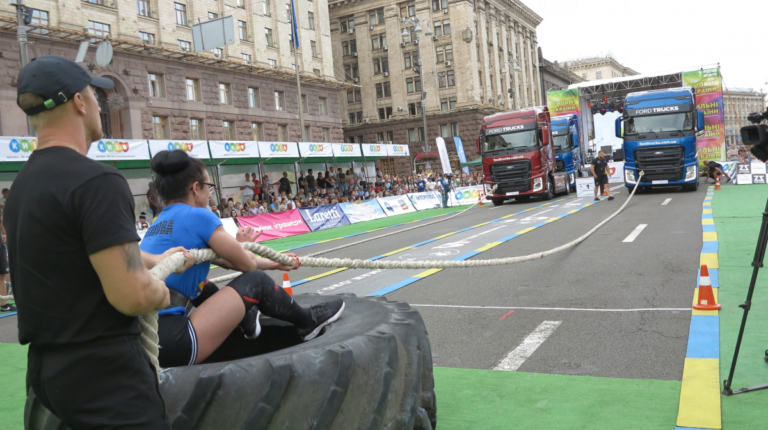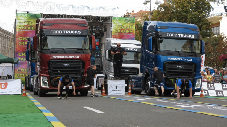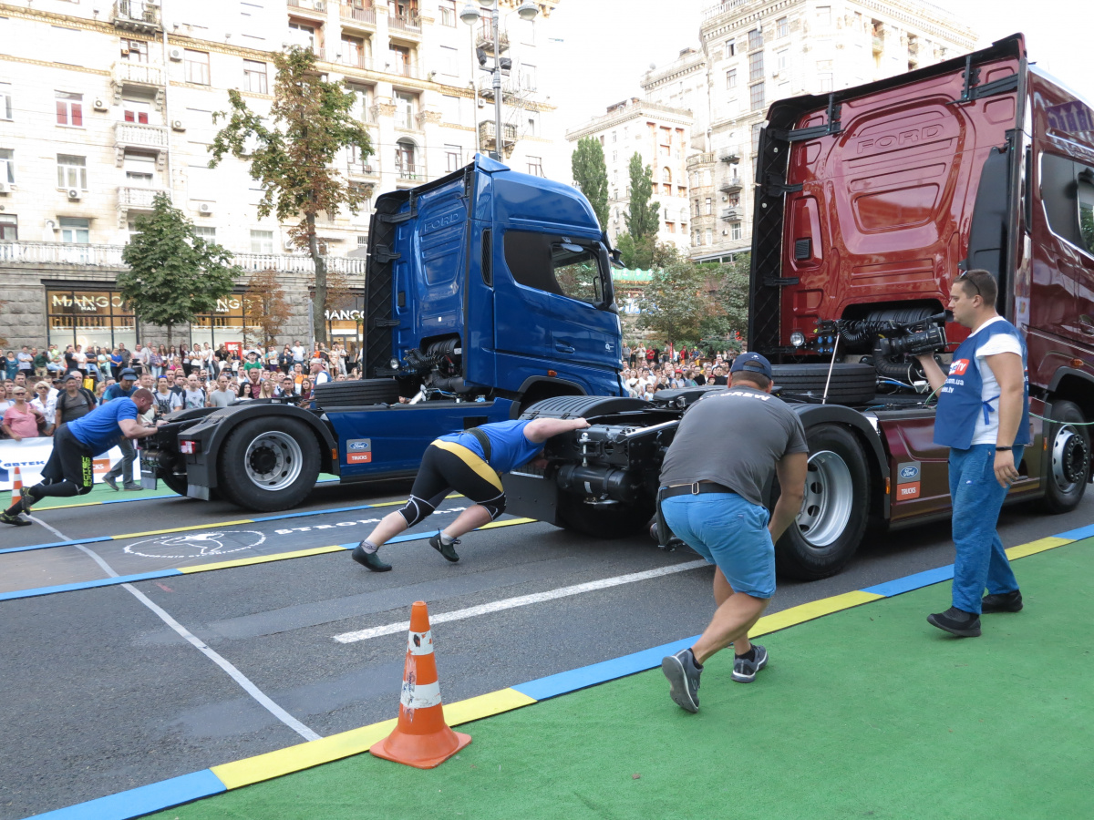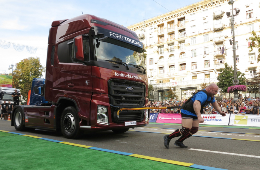 Спортсмени тягнули і штовхали вантажівки Ford Trucks F-MAX, який переміг у престижному конкурсі «Міжнародна вантажівка 2019 року» (International Truck of the Year 2019).