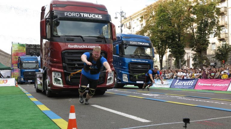 У Києві, на Хрещатику 10 серпня можна було побачити незабутнє видовище – українські богатирі взяли участь у Ford Trucks Чемпіонат, який відбувся в рамках фестивалю «Сильні України 2019». Організатором фестивалю виступила Федерація стронгмена України на чолі з її президентом Сергієм Конюшком.