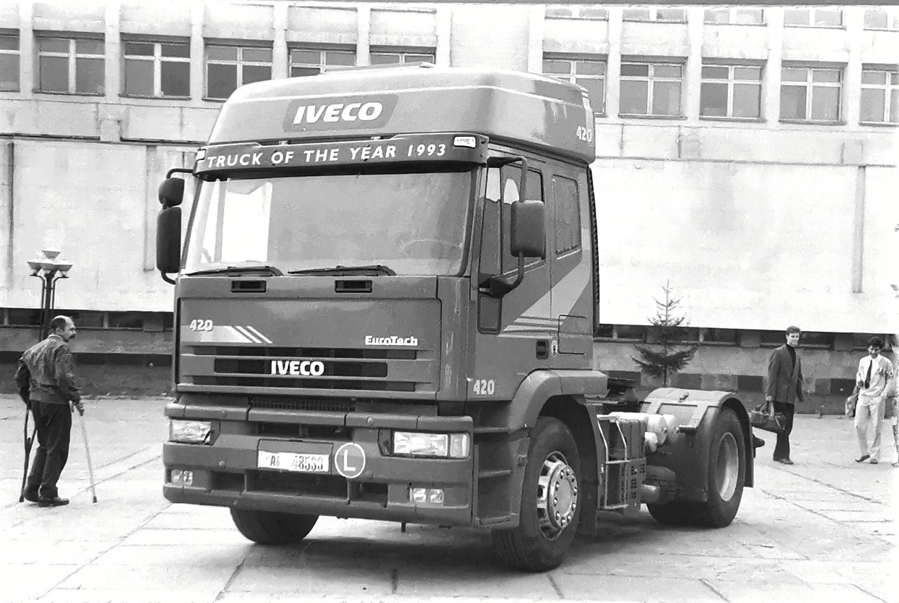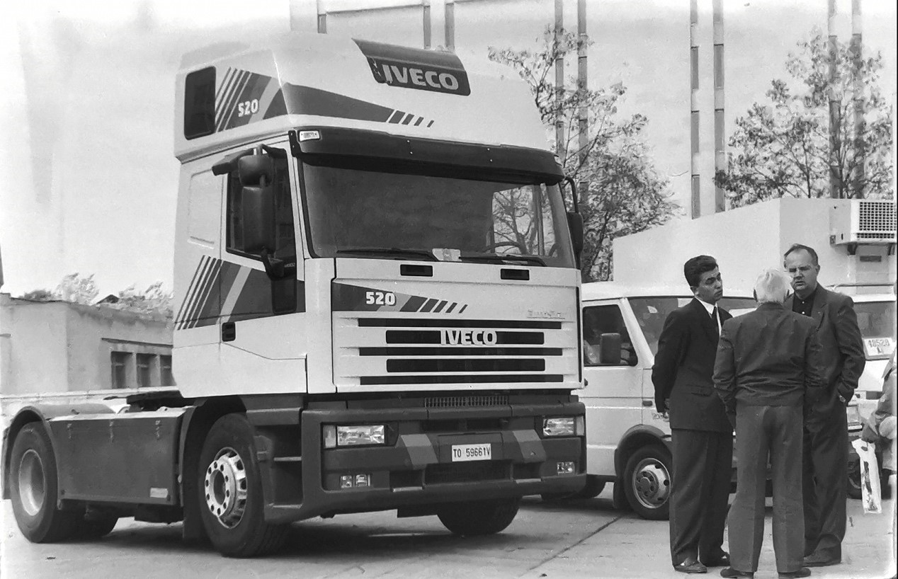 Особливо потрібно сказати про представлений флагман марки – сідловий тягач EuroStar. Це була тоді найпотужніша версія у виробничій програмі фірми – з двигуном 520 к. с. І при цьому найновіша – моделі 1993 року. Особлива увага була приділена кабіні: її визнали тоді найкомфортнішою в Європі. На презентацію в Київ тягач привіз розкладний напівпричіп – фірмовий офіс IVECO на колесах.