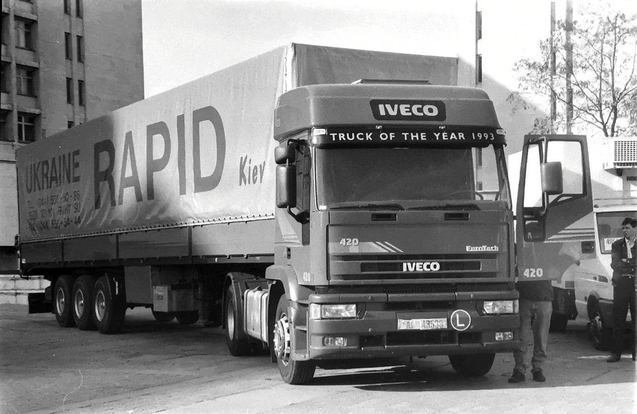 Тридцять років тому, у жовтні 1993 року, в автомобільному житті України сталася важлива подія – у Києві відбулася офіційна презентація відомої компанії IVECO, яка виходила на наш ринок. З цього приводу на території КПІ було влаштовано виставку продукції цієї фірми. І там було на що подивитися: в експозиції були зразки вантажівок усіх основних сімейств у типовому ряді фірми. Фото зроблені Леонідом Гоголєвим.