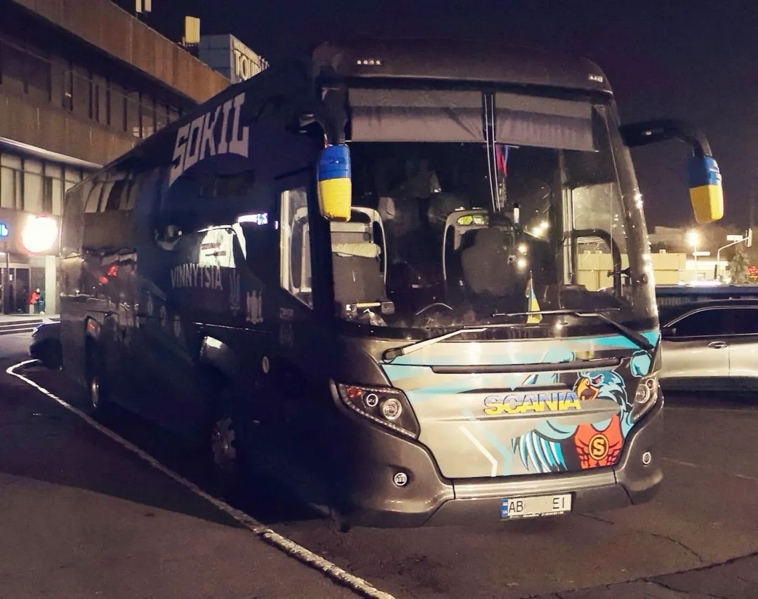 На бортах, а також на передній та задній масках кузова намальований грізний сокіл, що грає м’язами. Цікаво, що цей логотип «Cokіл Вінниця» дуже нагадує фірмову емблему Scania у вигляді голови грифону.