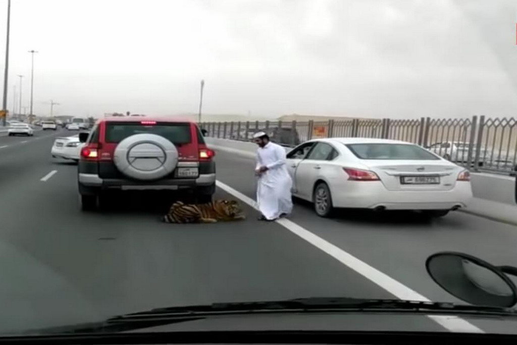Появление тигра на дороге в Катаре объясняется тем, что в этой стране многие зажиточные граждане держат у себя дома тигров, львов, гепардов и прочих диких животных, хотя это и незаконно. Поэтому нередки случаи, когда звери попросту убегают от своих хозяев на волю. Так что, на дорогах Катара не лишним был бы дорожный знак «Осторожно – тигры».