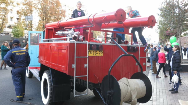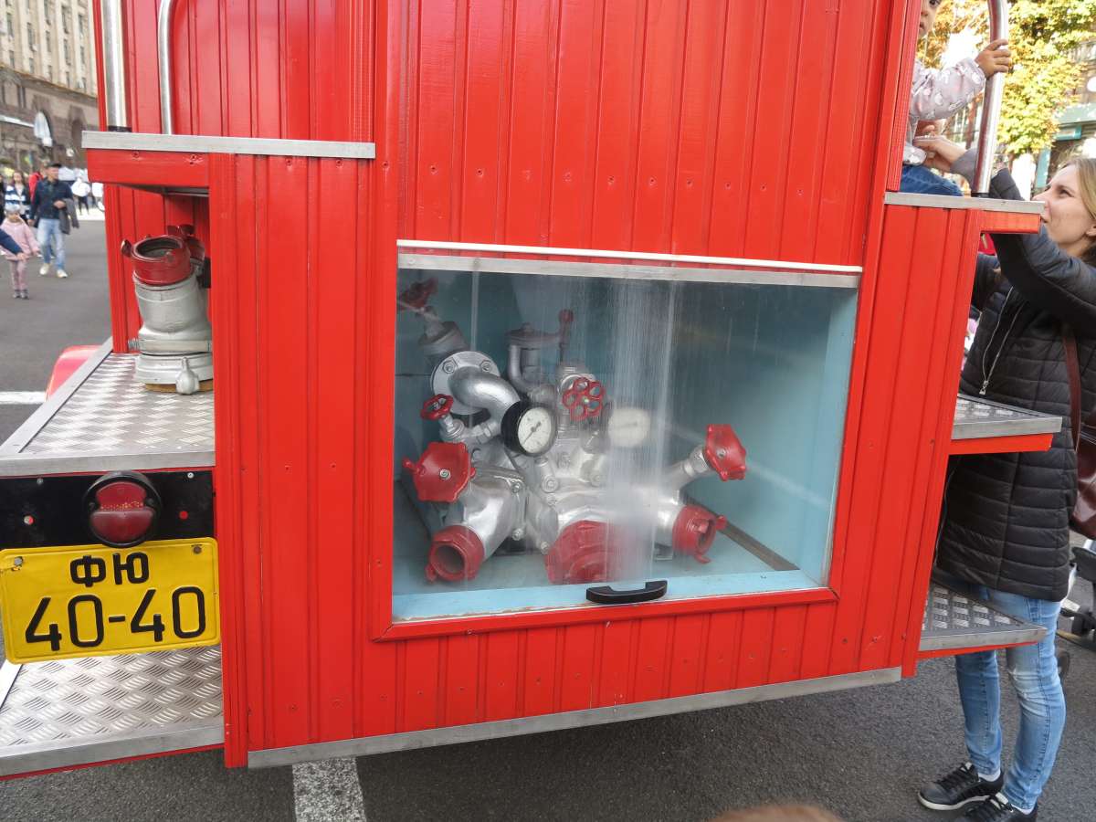 Крім сучасних автоцистерн і автодрабин можна було побачити машини, випущені кілька десятиліть тому. Один пожежний автомобіль – ПМЗ-8 на шасі ЗІС-5 довго заводили спеціальною ручкою – і машина не підвела, загарчала і зайняла гідне місце в колоні.