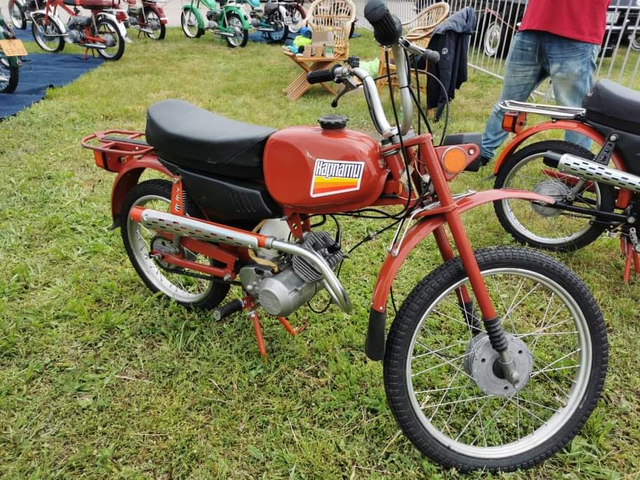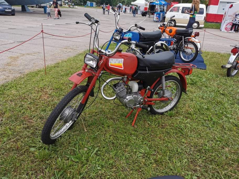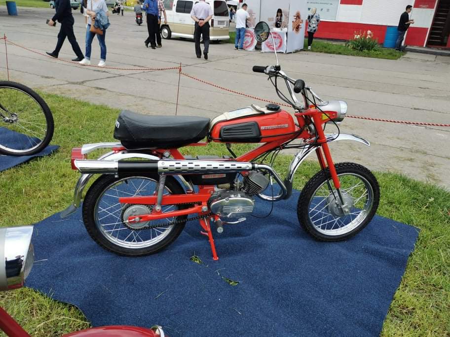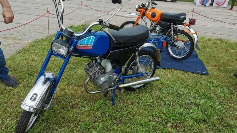 Кроме этого раритета на стенде насчитывалась еще целая дюжина интересных экспонатов. Среди них – первый в СССР мотовелосипед ХВЗ В-901 1959 года выпуска, который производился на Харьковском велозаводе в 1958 – 62 гг. Демонстрировалась также гамма машин и от Львовского веломотозавода, в том числе первый мотовелосипед ЛВЗ В-902, выпускавшейся в 1958 – 63 гг. Была на стенде и одна из наиболее удачных львовских моделей – ЛМЗ МП-048 «Верховина 3» (1970 – 72 гг.), а также ряд моделей «Карпаты».