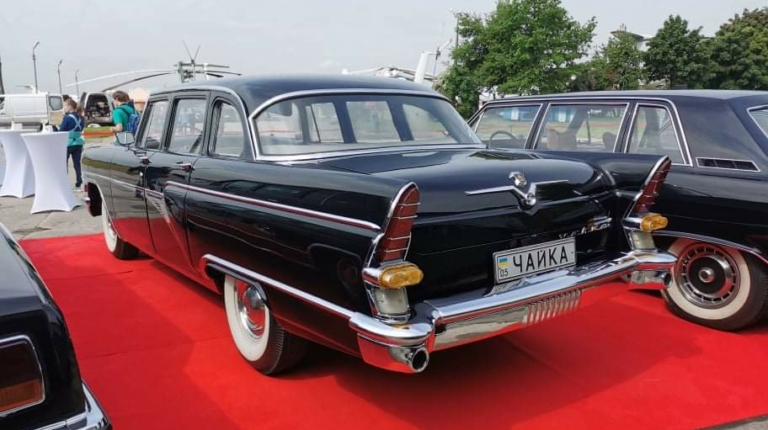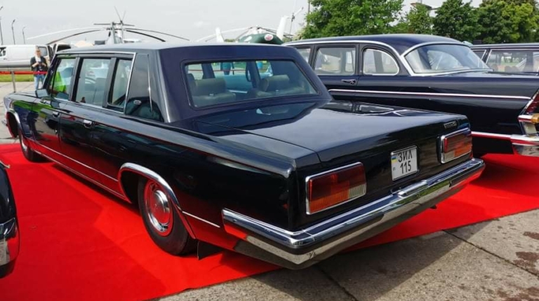 В экспозиции присутствовал и автомобиль чехословацкого производства – представительская модель Tatra 613. Двигатель воздушного охлаждения у нее был расположен сзади, из-за чего у нас эти машины шутя называли «Большим Запорожцем». Машина разрабатывалась с 1968 года, а в серию пошла в 1974-м. Примечательно, что элегантный кузов разработало известному итальянское ателье Vignale. Мотор V8 (3,5 л) развивал 165 л. с. и разгонял автомобиль до 190 км/ч. Представленная машина 1976 года выпуска принадлежала выдающемуся украинскому оперному певцу Владимиру Гришко.