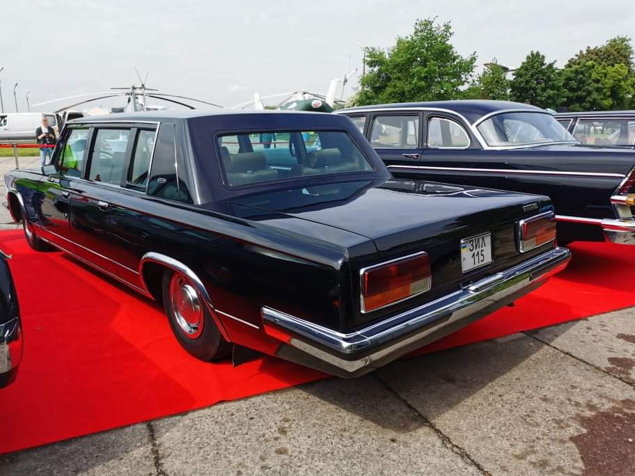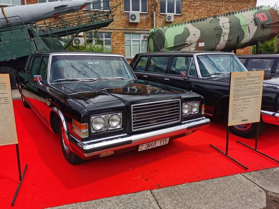 На стенде были показаны и представительские автомобили ЗИЛ более позднего выпуска. Модель ЗИЛ-114 впервые в отечественном автопроме имела трехконтурные дисковые тормоза, по лицензии фирмы Girling, откидной руль и электростеклоподъемники. Автомобиль выпускался в 1967 – 1977 гг. и постоянно обновлялся. Каждая машина собиралась вручную. Всего было сделано 113 экземпляров. Двигатель V8 (6,95 л) развивал 300 л. с. Коробка передач – автоматическая. Максимальная скорость – 190 км/ч.