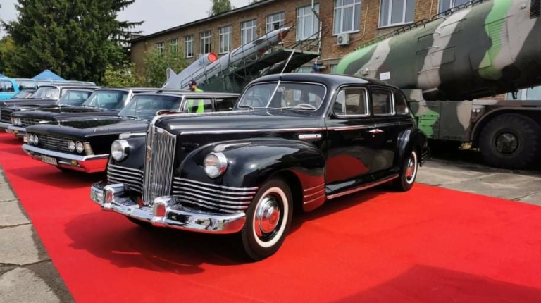 Экспозицию Old Car Land 2021, по традиции разместившуюся на территории Государственного музея авиации, открывала эффектная коллекция представительских автомобилей, выпущенных в разные годы.