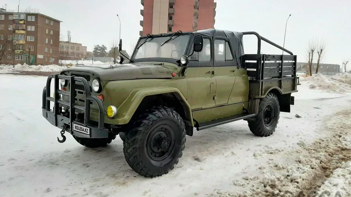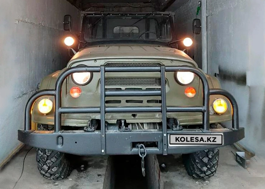 Только посмотрите на этот уникальный внедорожник, который сегодня продается в Казахстане за 20 тысяч долларов с небольшим. Первое, что мы видим - кузов от УАЗ-469, который смонтировали на шасси грузовика, а точнее ГАЗ-66. Передние крылья взяты от еще одного армейского донора – ЗИЛ-131 (6х6).