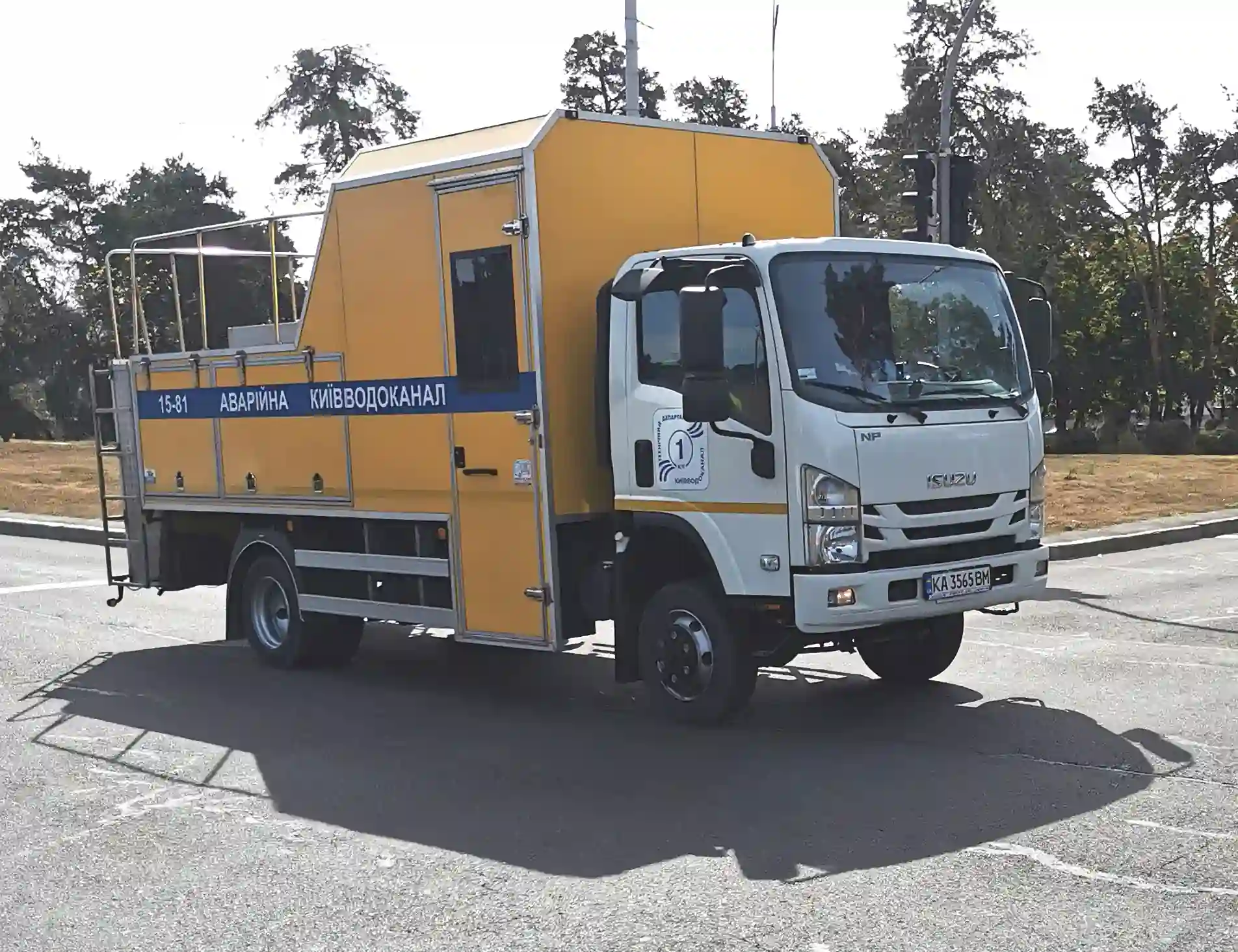 Дуже цікаве й повнопривідне шасі цього спеціалізованого автомобіля - ISUZU NPS75, поставлене компанією «Комтранскомплект». Воно має вантажопідйомність 4405 кг і розраховане на повну масу 7500 кг. В якості силового агрегата використовується 5,2-літровий турбодизель потужністю 155 к. с. з максимальним крутним моментом 419 Нм при 1600 об/хв. Застосовується механічна, 5-ступенева КП та 2-ступенева роздавальна коробка.