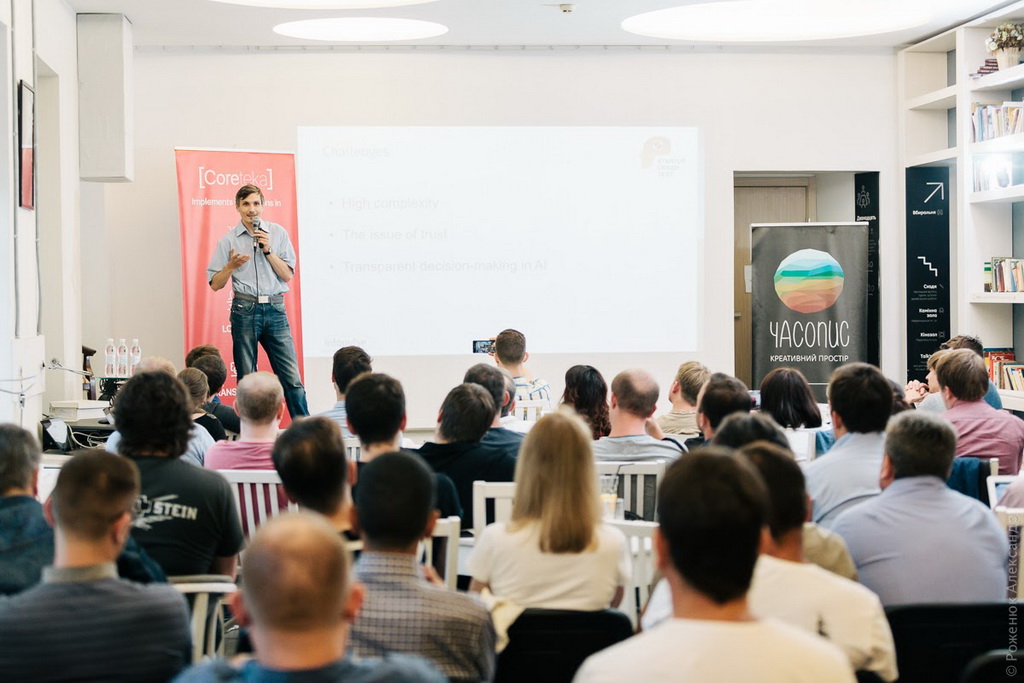Контентну частину представляв Олег Наливайко, Engagement Manager в Infopulse Ukraine. Олег поділився своїм баченням теми “Перспективи Cognitive Computing в automotive індустрії”, дав поради, які ніші є актуальними, а в яких буде складно конкурувати з автомобільними гігантами, що інвестують мільярди доларів в Cognitive Computing.