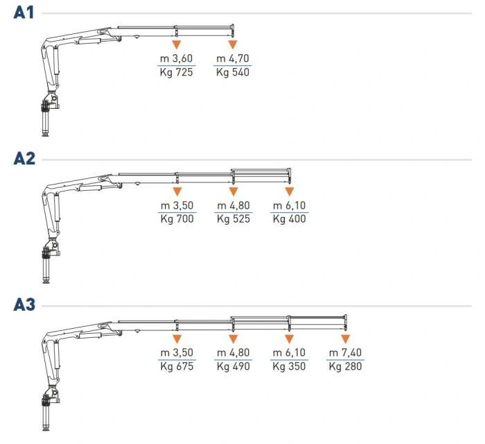 Модельна лінійка пропонованих в Україні кранів-маніпуляторів доволі широка і різниться кількістю секцій і вантажопідйомністю. Її відкриває КМУ Сomet XC33, яка представлена в трьох виконаннях – зі стрілою на 2, 3 або 4 секції, і вантажопідйомністю до 725 кг. Максимальна висота підйому вантажу дорівнює відповідно - 7,35 м; 8,71 м і 10,08 м. А сама установка важить залежно від довжини стріли від 385 до 450 кг.