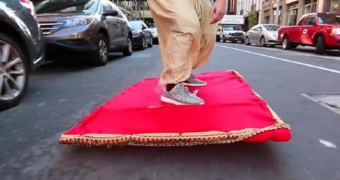 То, что вытворяет этот малый на «летающем ковре» между автомобилями на оживленных улицах Нью-Йорка вызывает только восхищение.