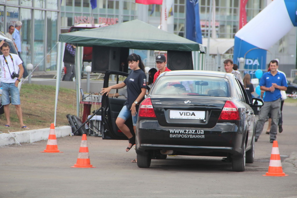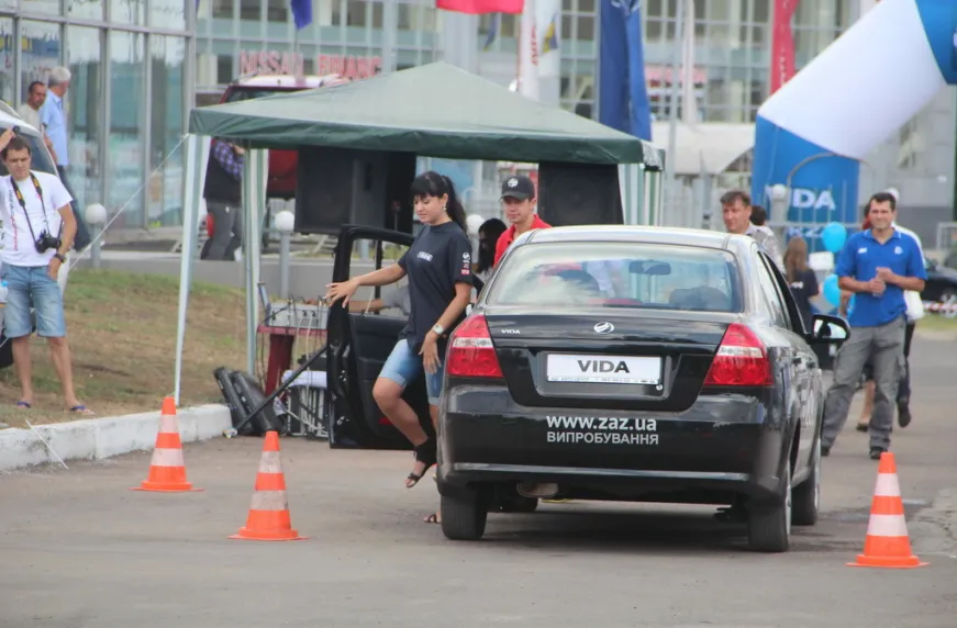 Но, как обычно, накал страстей состоялся на скоростном маневрировании и парковке. Двое участников-мужчин грубо ошиблись при проезде «змейки» и заработали по 30 штрафых баллов. Один из них, уже на первых метрах, осознав, что ошибся с траекторией, решил показать публике театральное выступление. И на тестовой ЗАЗ Vida продемонстрировал элементы дрифта, сбив все фишки.