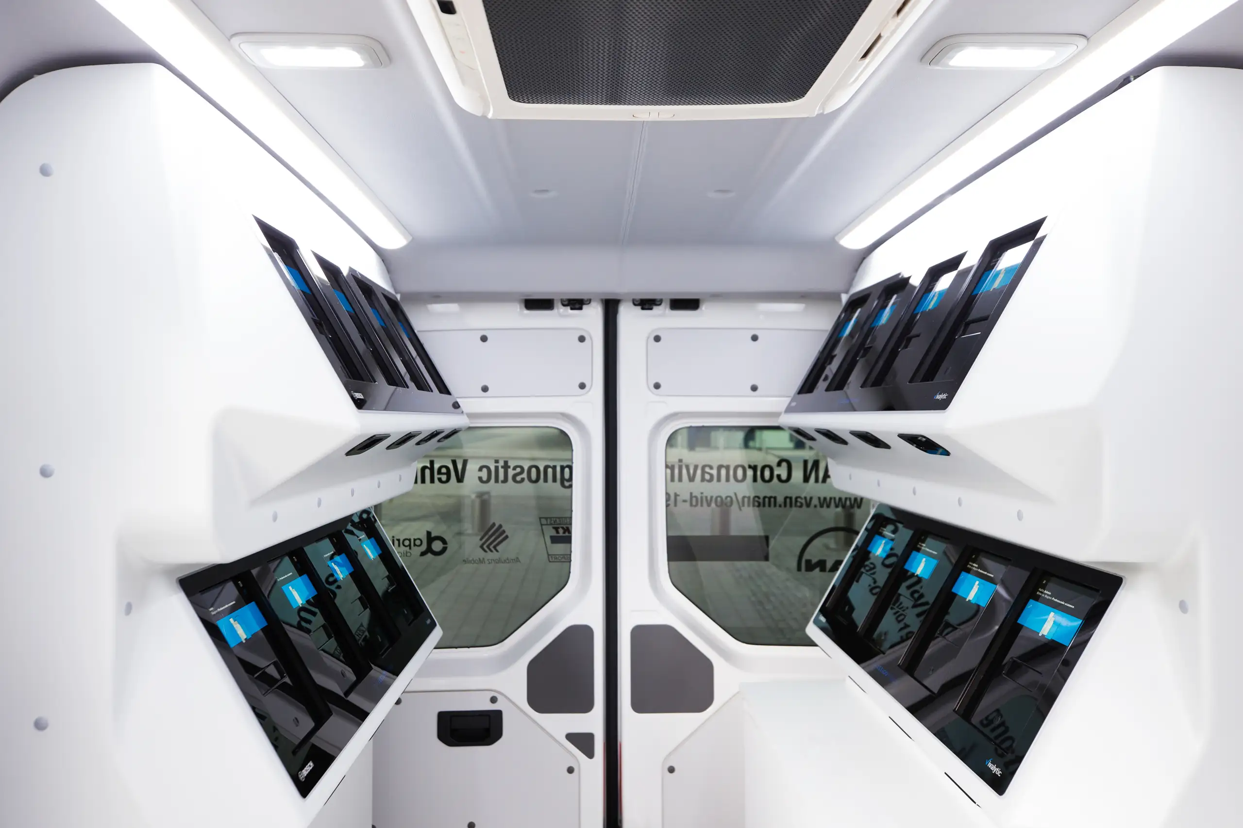 У мобільній лабораторії можна виконувати чотири завдання в одному безперервному процесі: взяття мазка, тестування, аналіз і комунікація. Результати ПЛР-тесту передаються в цифровому вигляді з тестового пристрою на портативний комп'ютер у реальному часі. Це дає змогу швидко відправити звіт просто з автофургона MAN у відповідальні органи охорони здоров'я, департаменти або людині, яку перевіряють.