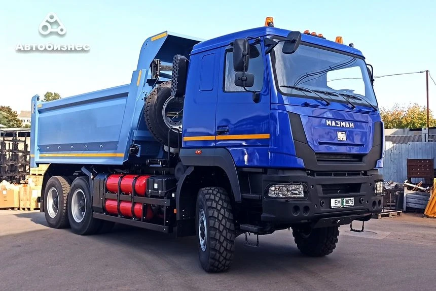 Зазначимо, що нинішньої осені підприємство презентувало самоскид МАЗ-МАН 756k59 із двигуном на стиснутому газі. Ця машина з колісною формулою 6х6 розрахована на повну масу 41 і може перевозити до 23 т вантажу. Самоскид приводить у рух двигун "Кожак" Т-15, створений на базі ЯМЗ-6586. Вісім сталевих газових балонів мають об'єм 1164 л і вміщують 280 кубів "блакитного палива", що забезпечує запас ходу до 500-600 км.