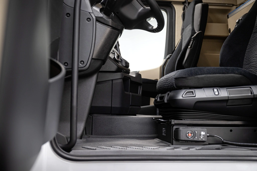 Mercedes-Benz Actros F также имеет систему активного торможения пятого поколения Active Brake Assist, которая с января 2020 года является обязательным оснащением всех Actros для европейского рынка, как и система удержания на полосе движения – Lane Kipping Assist. Опциональной является система помощи в слепых зонах Sidequard Assist.