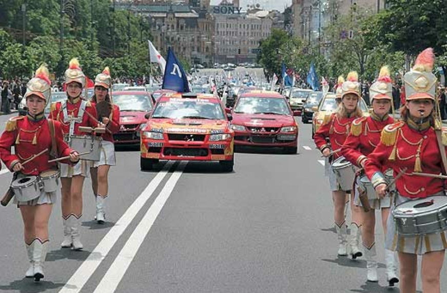 Точно по расписанию колонна двинулась к месту своего назначения – Майдану Незалежности. Движение колонны, растянувшейся почти на полтора километра по проспекту Победы, а потом и бульвару Шевченко, сопровождалось радостными возгласами энтузиастов и громкими гудками клаксонов. Взрослые, серьезные люди веселились, как дети. Царила атмосфера искренней радости и открытости! А когда парад добрался до Бессарабской площади, где его участников встречали отряд барабанщиц и тысячи восторженных зрителей, было даже жаль останавливаться.