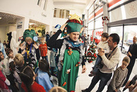 Ее величество Снежная Королева, Снегурочка, сказочные зайцы и хозяин праздника, Дед Мороз приготовили для юных гостей настоящие веселые развлечения. Вместе с героями дети наряжали красавицу елку, участвовали в захватывающих конкурсах, а так же читали стихи в классической позиции – возвышаясь над слушателями на табуретке. Все фотографии данного праздника Вы можете посмотреть у нас на сайте в фотогалереи.