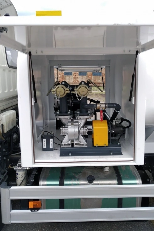 Итак, на представленном 5-кубовом автотопливозаправщике за кабиной был установлен специальный отсек для топливораздаточной системы и встроенного оборудования учета топлива – ранее все это находилось отдельно внизу, что было менее удобно.