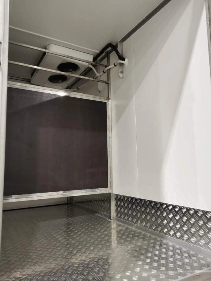 Каркас изотермической капсулы сделан из специального алюминиевого анодированного профиля. Толщина панелей – 50 мм. Масса термоизоляции – 200 кг. Внутренние размеры фургона по панелям: длина – 1600 мм, ширина – 1150 мм и высота – 1000 мм. Внутренний объем – 1,85 м куб. На обеих машинах холодильное оборудование управляется специальным пультом из кабины водителя.