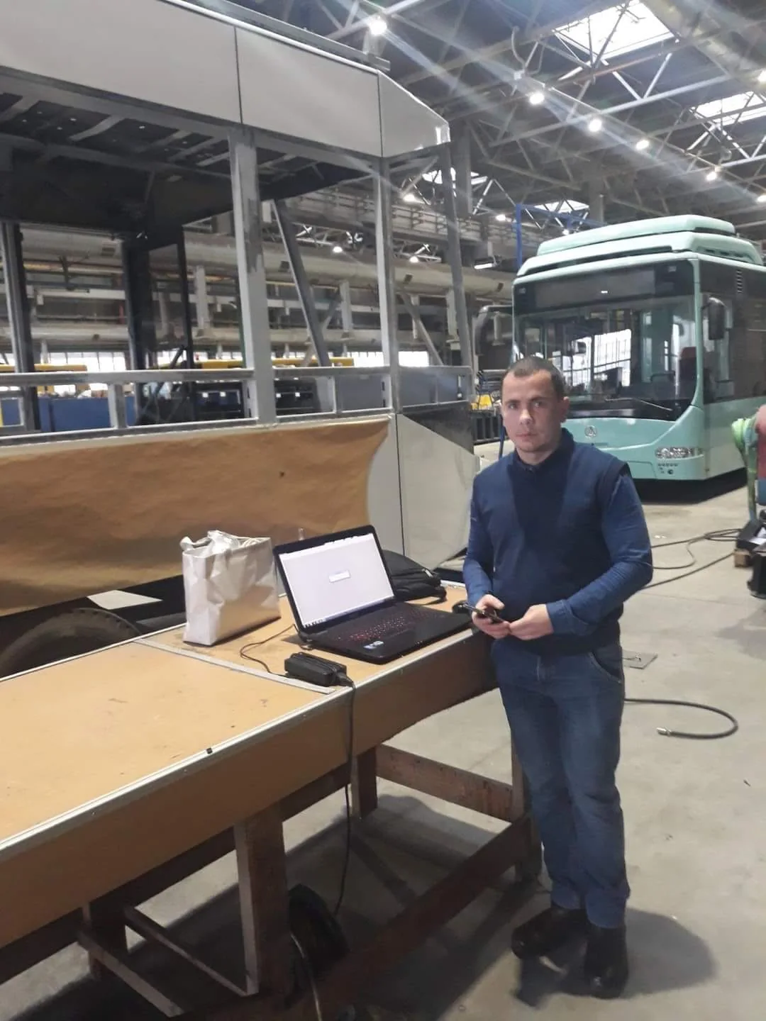 Кстати, на одной из фотографий трамвая, сделанной в цехе Черниговского автозавода, можно увидеть и обновленный троллейбус «Барвинок». Машина получила более современные дизайн «передка» и характерный «горб» над кабиной водителя.
