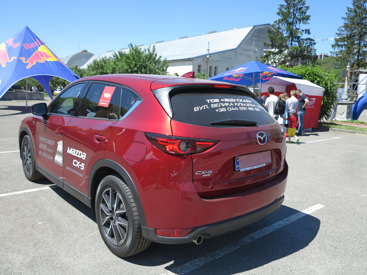 Для тест-драйва будет доступна Mazda CX-5 с 2,5-литровым бензиновым двигателем мощностью 194 л. с. и автоматической 6-ступенчатой коробкой передач. Машина представлена в топовой комплектации Premium. Цена такой машины – 1 079 000 грн. (для авто 2017 г.в. – 1 020 000 грн.).
